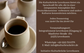 „Kulturbrücke Leverkusen“ ist eine relative neu gegründete Initiative. Sie wurde von Geflüchteten und Migranten ins Leben gerufen. Wir haben uns zum Ziel gesetzt, in einer immer mehr gespaltenen Gesellschaft den interkulturellen Dialog zu fördern und die grundlegenden Werte einer demokratischen Gesellschaft zu vermitteln.
